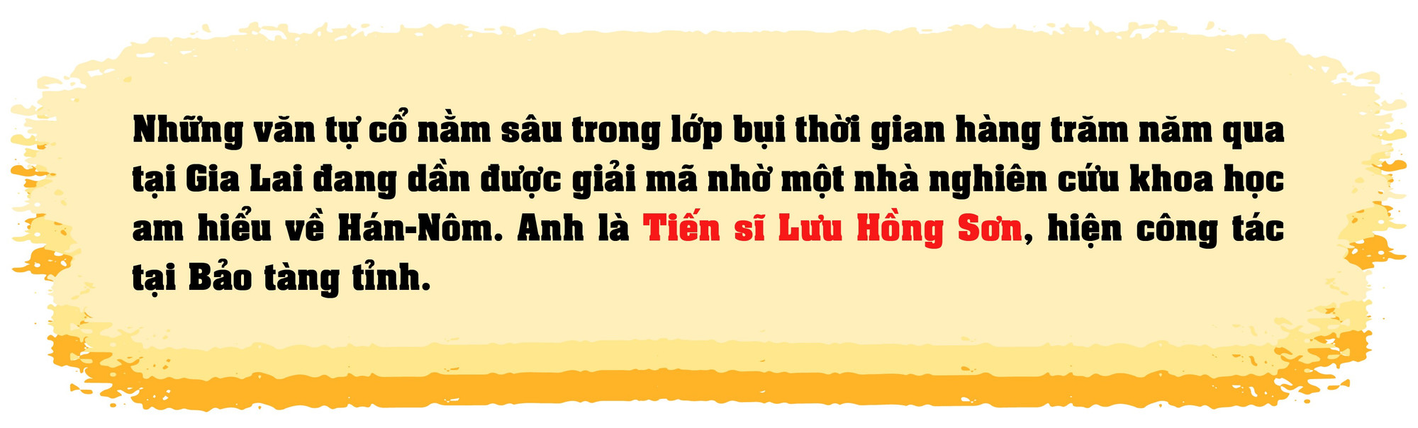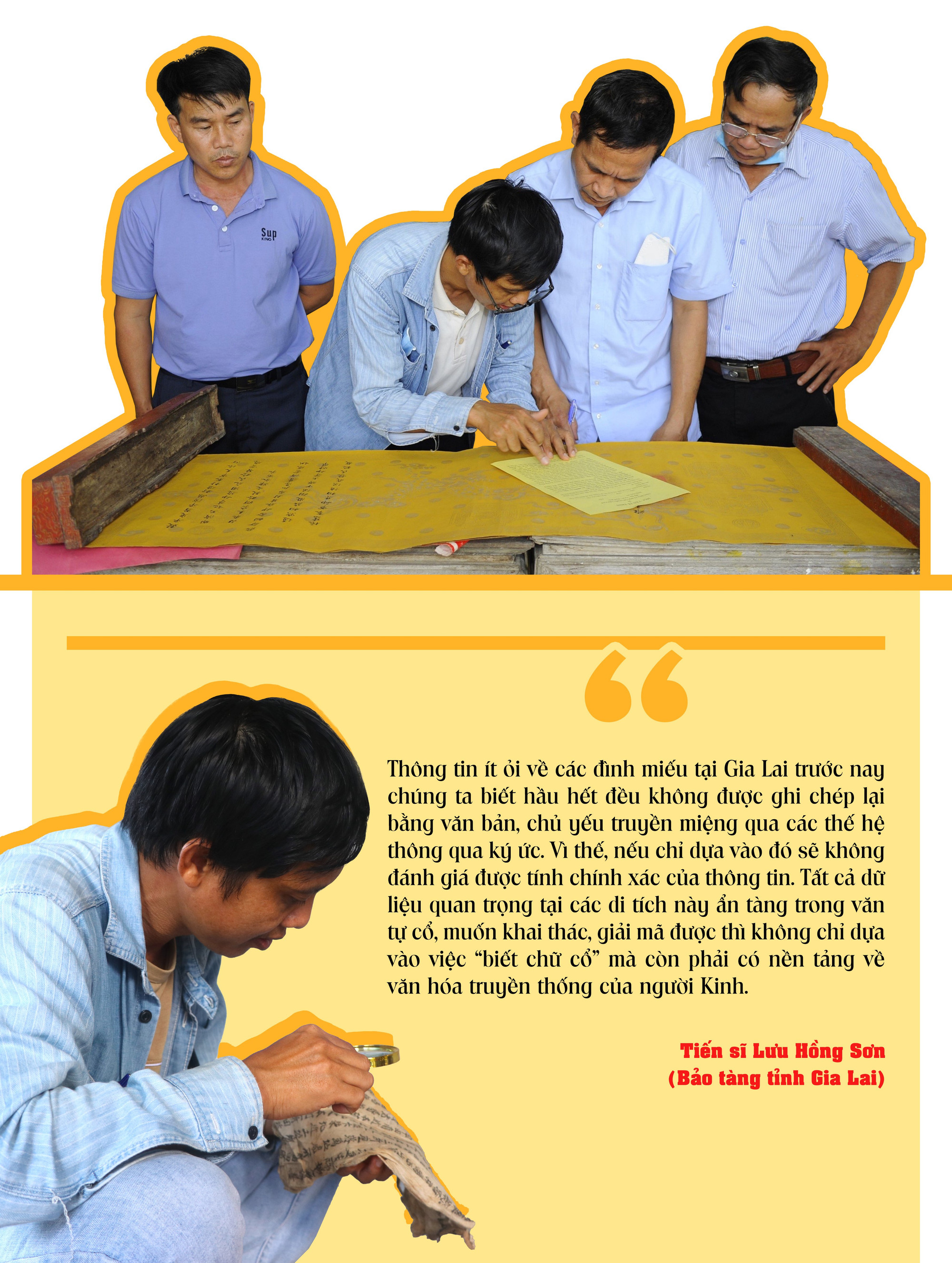 Tiến sĩ Lưu Hồng Sơn bước vào thế giới văn tự cổ tại Gia Lai từ năm 2018, khi khảo sát thực địa thực hiện hồ sơ di tích cấp tỉnh cụm đình miếu Tân Lai-Tân Chánh, đình Tân An và miếu Thanh Minh tại thị xã An Khê. Bắt đầu từ đây, anh có những phát hiện mới mẻ về lịch sử, văn hóa của cộng đồng người Kinh cư trú lâu đời nhất vùng Đông Gia Lai là An Khê, Đak Pơ.