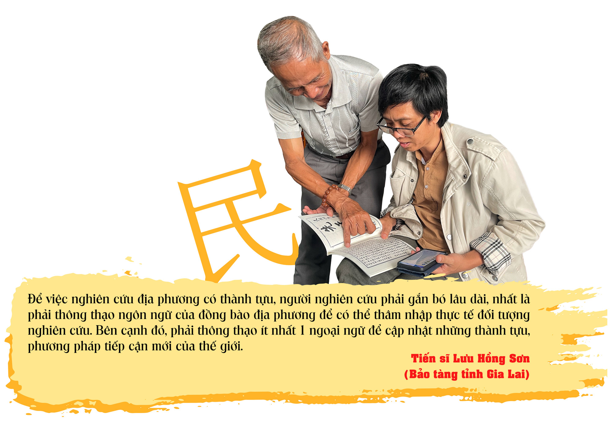 Tiến sĩ Lưu Hồng Sơn lớn lên tại vùng An Phú, TP. Pleiku. Sau này, anh học tập và làm việc tại TP. Hồ Chí Minh, trở thành chuyên gia lý luận văn học và văn hóa truyền thống của Viện Khoa học Xã hội vùng Nam Bộ (thuộc Viện Hàn lâm Khoa học Xã hội Việt Nam). Anh đã công bố hàng trăm bài nghiên cứu, dịch thuật, đề tài chuyên môn khi ở Viện Khoa học Xã hội vùng Nam Bộ. Năm 2020, anh xin chuyển công tác về Bảo tàng tỉnh. Ban đầu ý định của anh là để gần nhà và để đỡ “nặng đầu” vì công việc nghiên cứu khoa học nhọc nhằn. Nhưng không ngờ thực tế địa phương lại khiến “bệnh nghề nghiệp” và khát vọng khám phá trong anh trỗi dậy, đến mức “còn nhức đầu hơn cả khi ở trỏng” như anh chia sẻ.