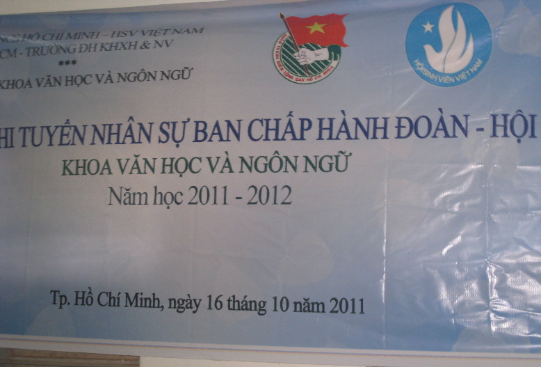 Sáng ngày 16/10/2011, tại phòng G02 cơ sở Linh Trung, Thủ Đức, BCH Đoàn – Hội Khoa Văn học & Ngôn ngữ đã tiến hành cuộc thi tuyển nhân sự để bổ sung vào BCH cho nhiệm kỳ mới.